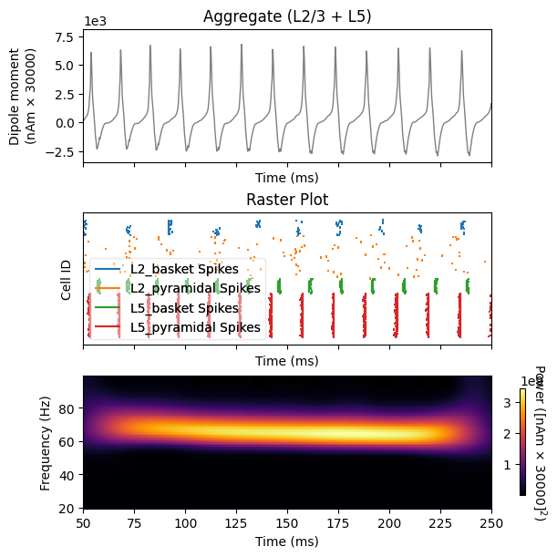 This example demonstrates how to simulate gamma rhythms via the well established pyramidal-interneuron-gamma mechanisms [1], as detailed in the HNN GUI gamma tutorial, using HNN-Core.
